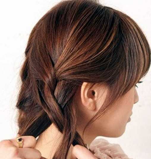 3、然后从上部分头发开始编为三股简单的麻花辫形象,编至发尾处使用橡皮筋扎好。