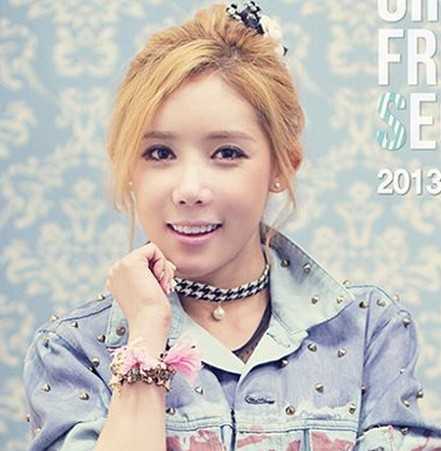 高扎的一个丸子头,一个三七分的刘海设计,完美符合了韩国MM的脸型,修颜减龄的效果极致,美美的黄发色,诠释出个性潮女魅力。