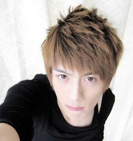 具有日系风格的亚麻色短发型,不规则的修剪的直发刘海造型,超有90后个性男孩的特质,还能完美突出自信美男气质。