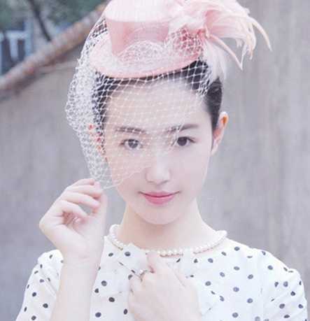 春季最流行的复古无刘海盘发发型,充满复古风格的盘发,装饰上蕾丝帽子饰品,清新甜美气质展现。