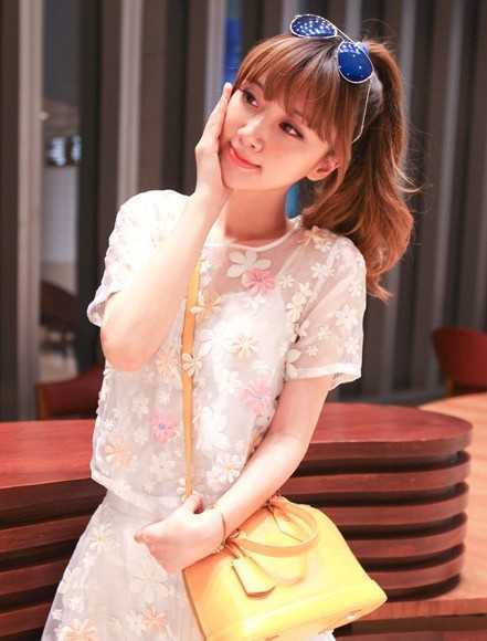 好甜美气质的说,高扎的马尾卷发辫,清爽怡人魅力,薄薄的齐刘海修剪,搭配墨镜发饰,给人时尚御姐范!小碎花的连衣裙装身,十分婉约甜美风。