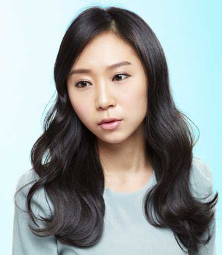 最显优雅唯美的三七分中长卷烫发,乌黑柔亮的发色,很显白皙肌肤,黑色的大波浪搭在肩上,散发出清纯妩媚,魅力十足。