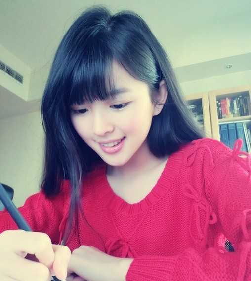 乌黑自然的长发发型,全部披搭肩后的头发,显出一丝的甜美气息,短短的斜刘海设计,正是妹子的最清新气质的演绎效果。