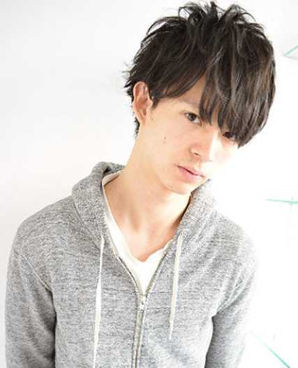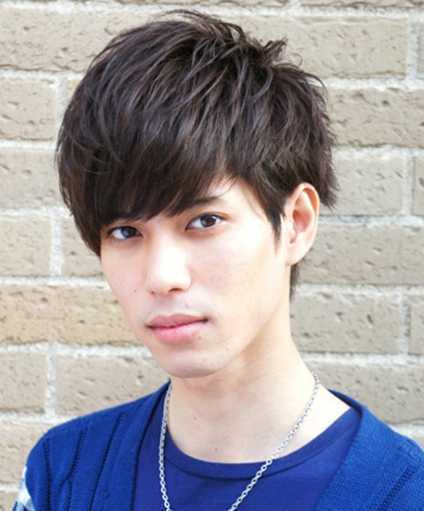 这款直刘海的长度稍微较长,层次分明的修剪,顶部的头发用发蜡梳起,加上棕黄的染发颜色,更显潮流,整款造型给人的感觉就是痞痞感觉,韩国男生最爱!