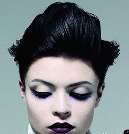 发型点评:黑色的发丝,整款发型看上去很有光泽,前面的刘海往后弄起,最具立体感,无刘海无疑显得清爽,夸张的妆容,显得有些少神秘。