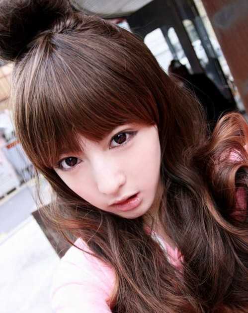 萝莉的大眼妹子,大波浪的长卷发优雅不失时尚感,然而在齐刘海的设计衬托后,立马倍增那么甜美可爱度。