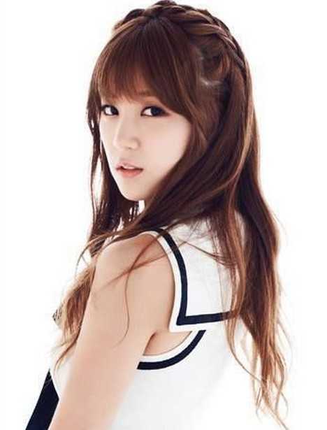 日系风的微卷长发发型,随意披搭肩上的头发,自然浪漫美,顶部的花环式编发搭配稀薄齐刘海,就是那么优雅气质呀!