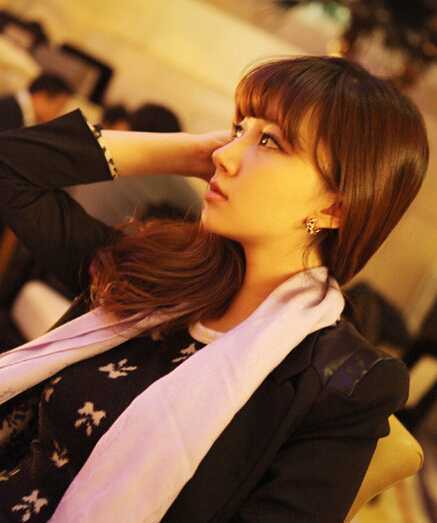 中长的梨花烫发往一侧拨,这样的发型设计看起来相当有气质,而搭配内扣式的刘海头发后,更是优雅魅力尽显。
