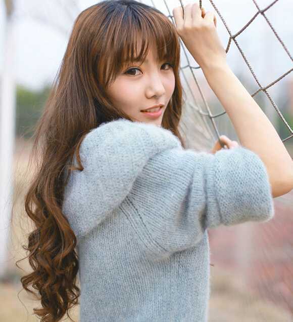 长长的卷头发,浪漫具女人味,深亚麻发色的染发,增添发型的时尚个性美感,空气式的内扣齐刘海,修颜外更是气质好看。