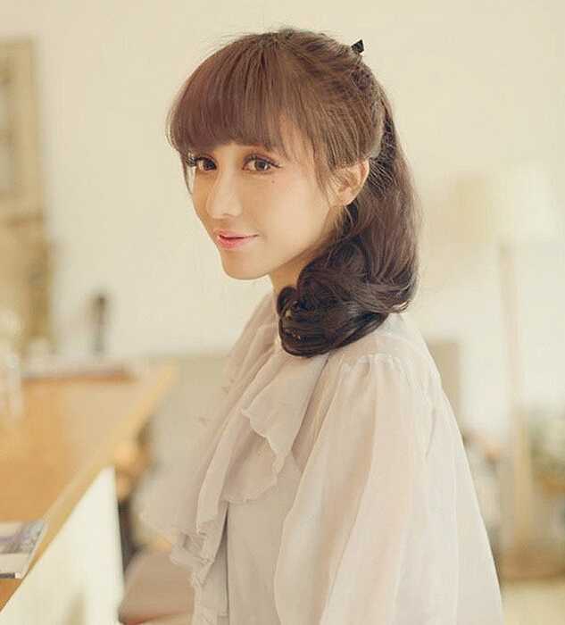 发型点评:扎发发型如果搭配上空气感刘海那是什么样子的呢!高扎的马尾,饱满的空气刘海修饰脸型,将小女人清新气息带了出来。