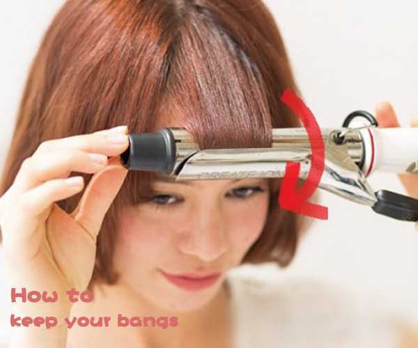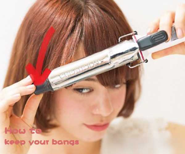步骤二:用卷发棒将刘海中间的头发向内烫卷,打理出内扣的弧度(温馨提示:烫发过程中小心烫手哦!)
