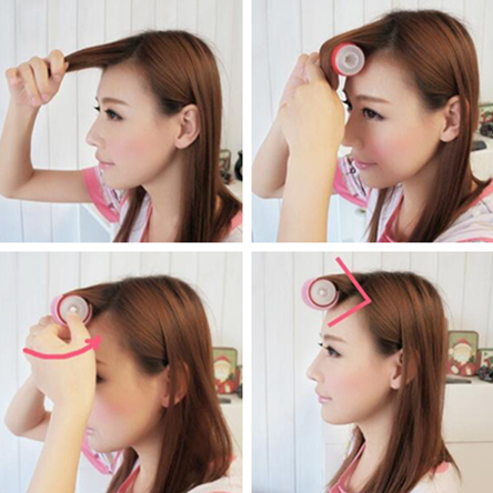 首先,我们要将刘海梳理整齐,然后将刘海呈片状取起来,将卷发卷置于刘海下面,然后将卷发卷往上提拉,使刘海的根部与额头之间呈大约90度角。