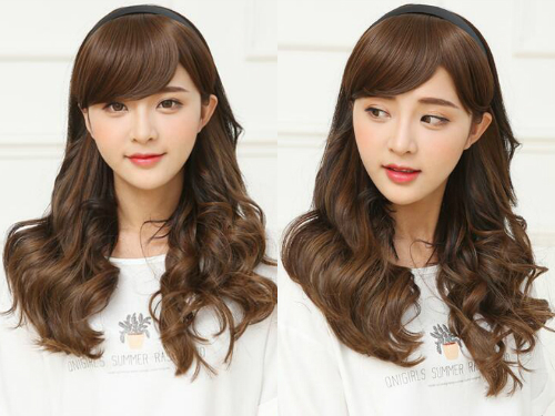 如果你最想要的是带有塑颜效果的斜刘海假发片,那么中分设计的斜长刘海假发片是非常适合你的,当较长的斜刘海落在你的脸蛋上,正好可以帮助你遮肉显瘦。