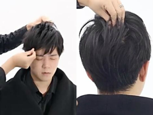 在两个手掌上涂满发蜡,然后轻轻捉抓表层的头发,注意要避开发根,否则容易致使发型失去立体感,尔后着重捉抓发顶,让其变得更蓬松。
