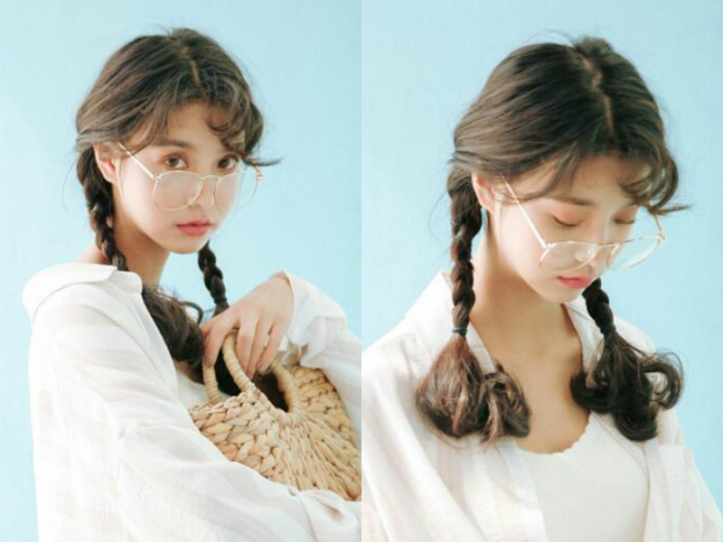 喜欢田园风的妹子就可以试试这款双麻花辫扎发啦!刘海的卷度比较大,而且形状也是比较随意的,相比于常规的刘海则显得新颖很多,深棕色的头发分成两份,编成辫子斜挂在肩前,很有田园小清新的气息哦!