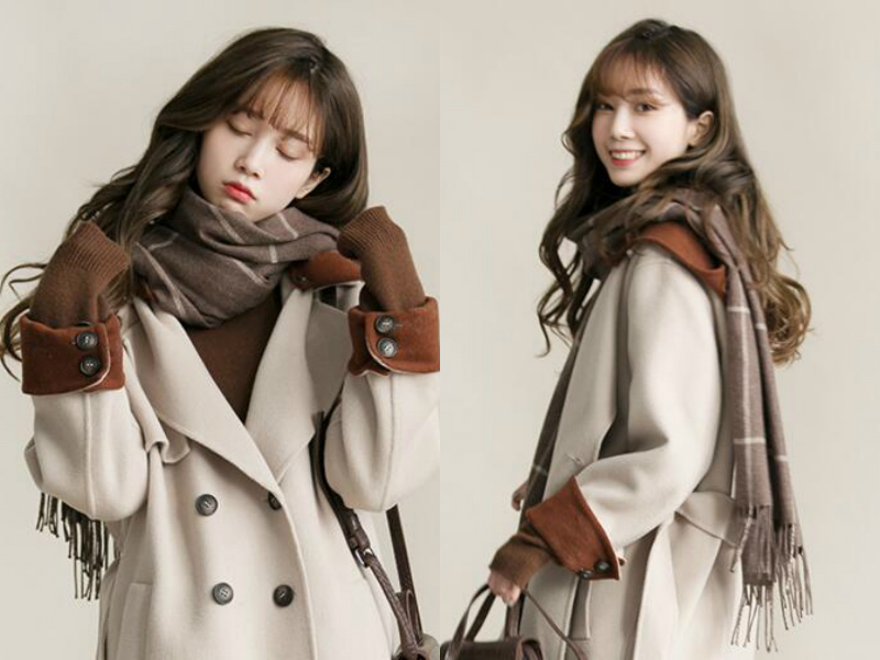 女生小小的巴掌脸被一头波浪卷的长发包裹,显得娇俏可人,超轻柔的半透明刘海轻轻的贴在额前,遮住额头减龄之余更使女生的小脸显得愈发精巧。本就白皙的肌肤在深亚麻色发色的衬托下倍显娇嫩剔透,整个人仿佛自带清新纯美的气质,让人忍不住升起一股保护欲。