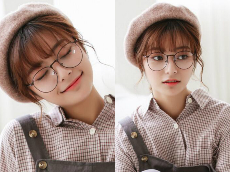 很有弧度不是很规则的空气刘海,戴着圆圆的大眼镜,瞬间让妹子的小脸蛋变得更加立体,更加小巧可爱起来。