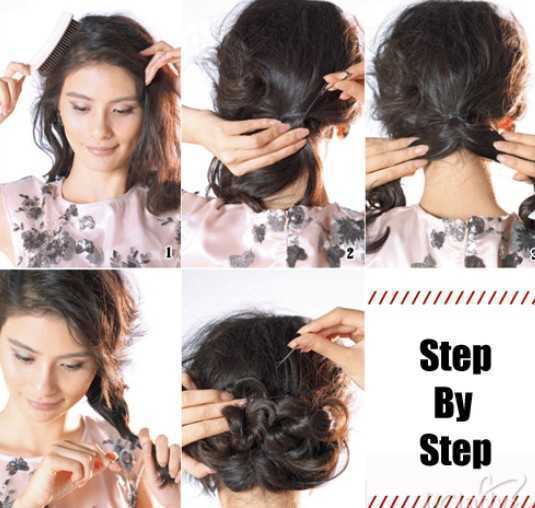 这款盘发显得浪漫,女人味直线飙升,将脸侧的头发大散,营造出蓬松的感觉,是2012年最流行的一款盘发。