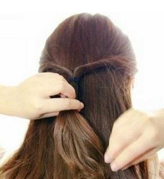 小心慢慢地将扎好的小马尾卷成辫子状,记住要小心点喔,否则弄得太乱就不好看咯。