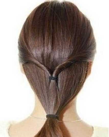 用橡皮筋将剩下的头发和马尾一起扎好在脖子的中下方,注意不要扎得太紧哦。