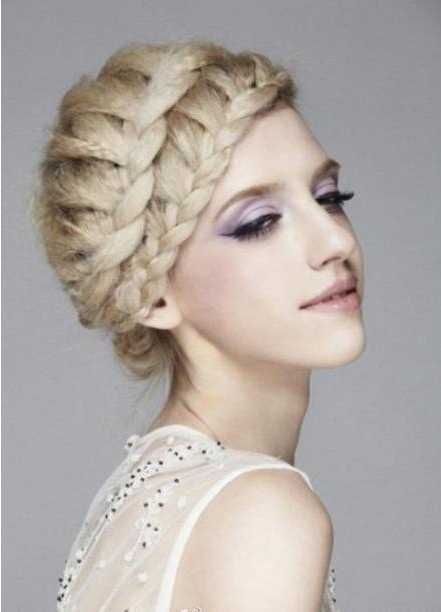 从刘海开始编发,分层编成两条整齐的大麻花,然后再在后面盘好,给人一处优雅的感觉,而优雅中又多几分俏皮感,而且这款盘发要弄得整齐光亮也不容易哦。