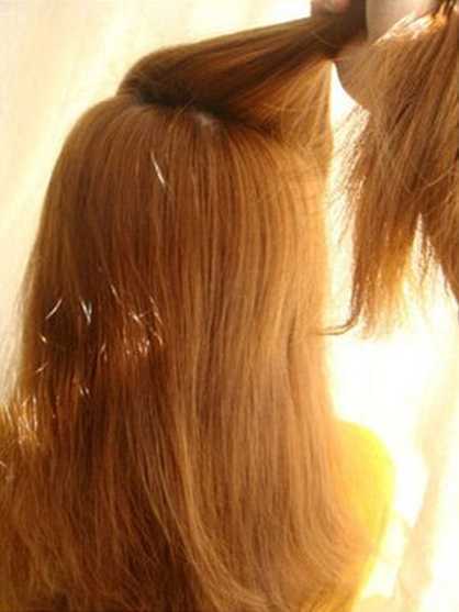 好啦,开始啦,从头顶拿起一小束头发,不要把头发弄得凌乱哦,弄乱了就不好看咯。