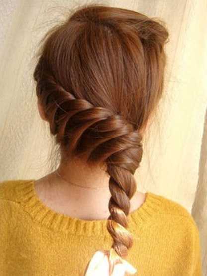 转到发尾后可以把扭转的辫子放松一点,这样出来的效果会比较自然好看。