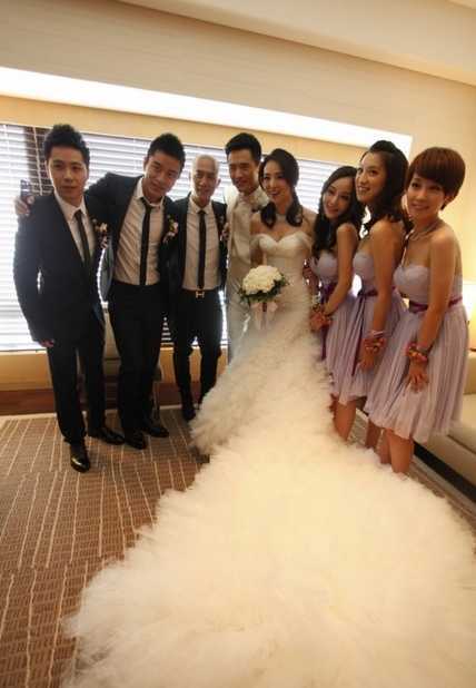 新郎新娘、伴郎伴娘的大合照,大家都好开心哦,伴娘李小璐还是给人一种甜美的感觉,搭上一个甜美的发型,更显甜美哦。