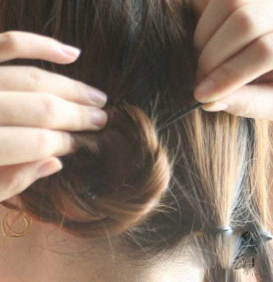 也是用同样的方法将其它两条小辫子弄成小发鬓,