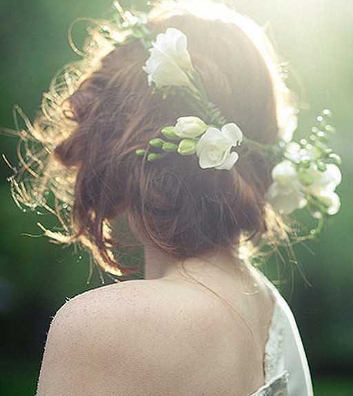 蓬松感十足的新娘韩式盘发,蓬松又不失自然感的盘发,戴上一束花圈,装饰的超唯美,在夕阳的照耀下显得很美,很迷人!