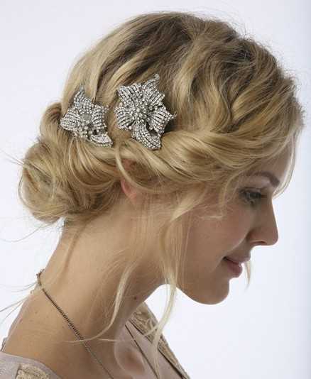 2013年夏季最流行的新娘盘发发型,充满了欧式风格设计,卷而蓬松感的发丝,加上好看的装饰物,更显得时尚典雅!两颊留下来的发丝,不经意之间又流露出妩媚!