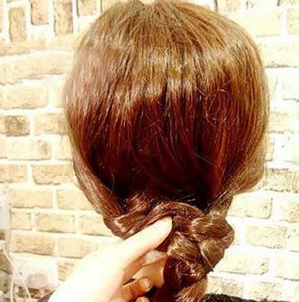 步骤二:两边都编成麻花辫之后,就将其中一边的辫子绕过另一根辫子。
