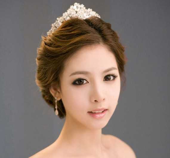 韩式风味超强的新娘盘发,自然盘起的秀发搭配水钻组合而成的皇冠,高贵大方的气质就自然散发出来,虽然没有过多的装饰,但却给人打造2013最流行的公主般新娘气质。