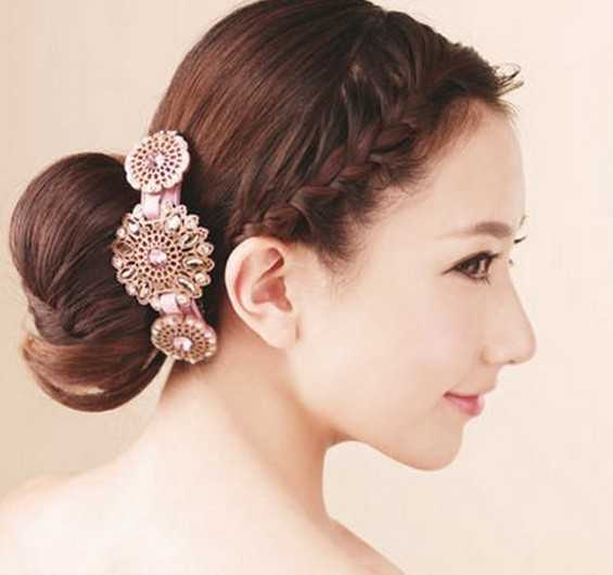 2013最流行的复古气息的美新娘盘发,高贵优雅,最特色的是花辫的刘海设计,清爽凸显新娘最美的妆容效果,低低盘起的头发经过复古发饰的装饰下更显时尚。