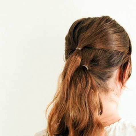 NO.4、也把剩下的头发再次用橡皮筋扎成低低的马尾形状。