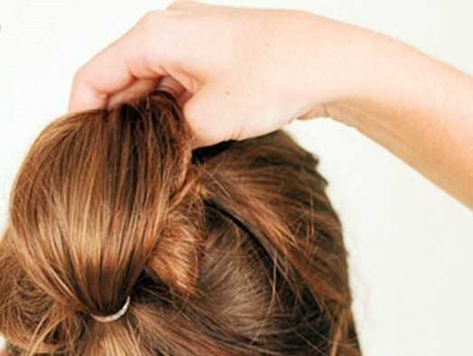 NO.5、先把凌乱的秀发卷好,再在下面比较柔顺的头发卷住成小丸子的形状。