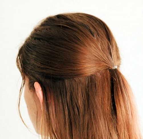 NO.2、将头发区分为两部分,然后拿橡皮筋扎一半头发的小马尾待用。
