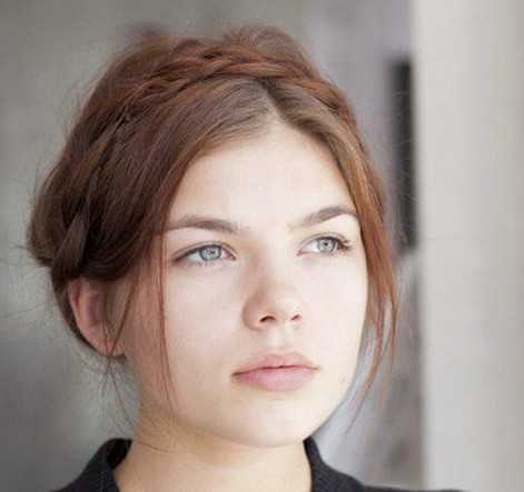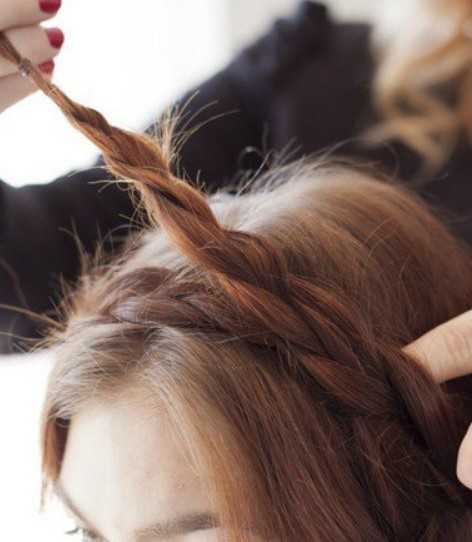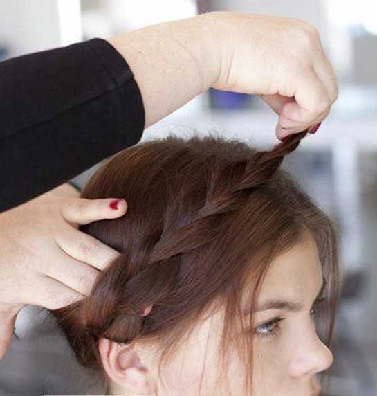 6、如图把编好小麻花辫扭到头顶的最前端上。