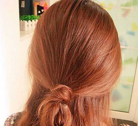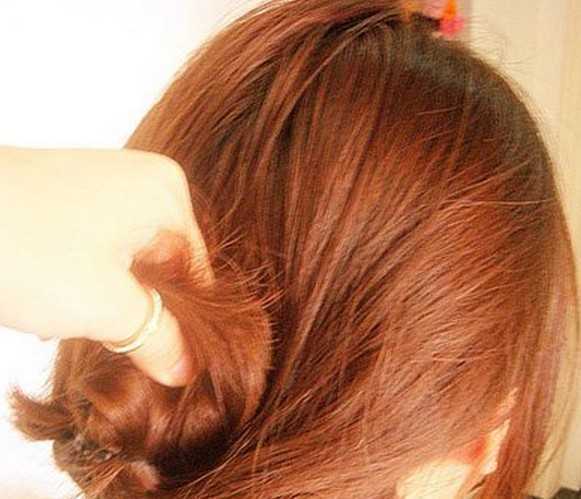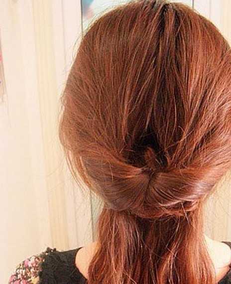 3、如图所示,把刚才扎好的头发在中间挖一个洞口,然后把发尾塞进洞里。