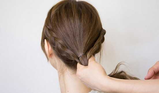 3、然后把麻花辫往后合并起来。