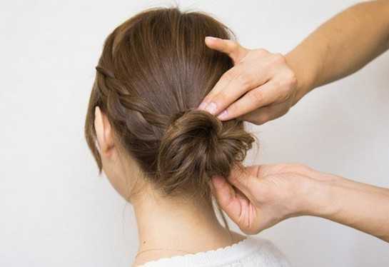 5、最后戴上一个甜美的发圈,使用小发夹固定花苞形状。