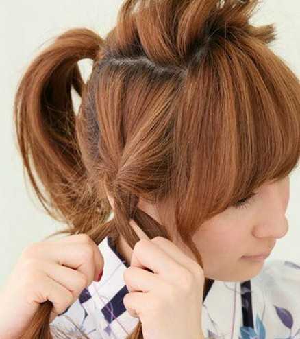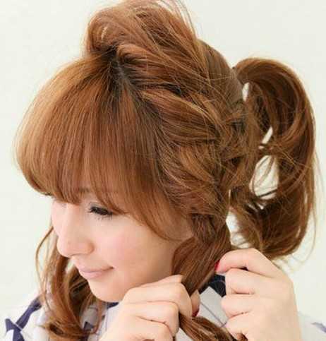 2、把侧面的部分头发编织为简单的三股麻花辫形状。