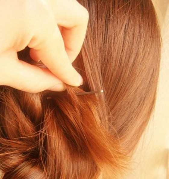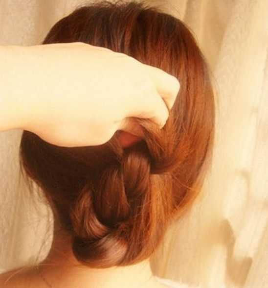 3、合并好后便把头发扭转起来,如图所示。