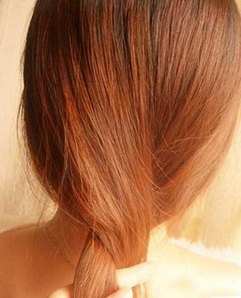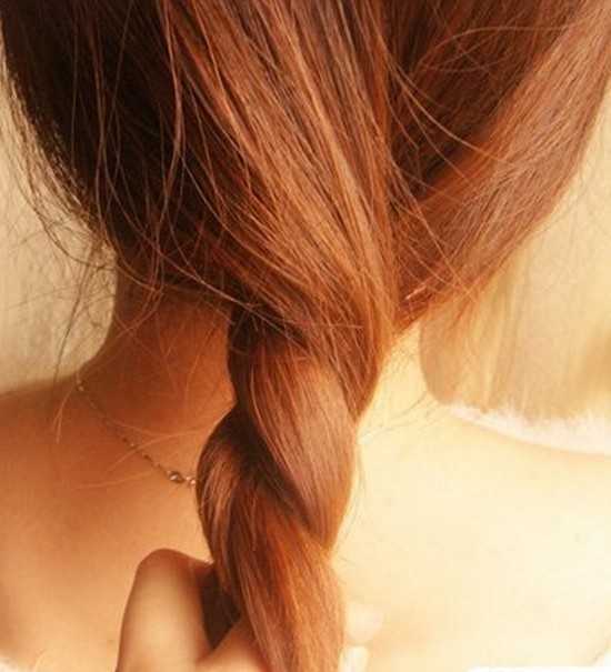 4、扭转到发尾处再把头发进行对折效果。
