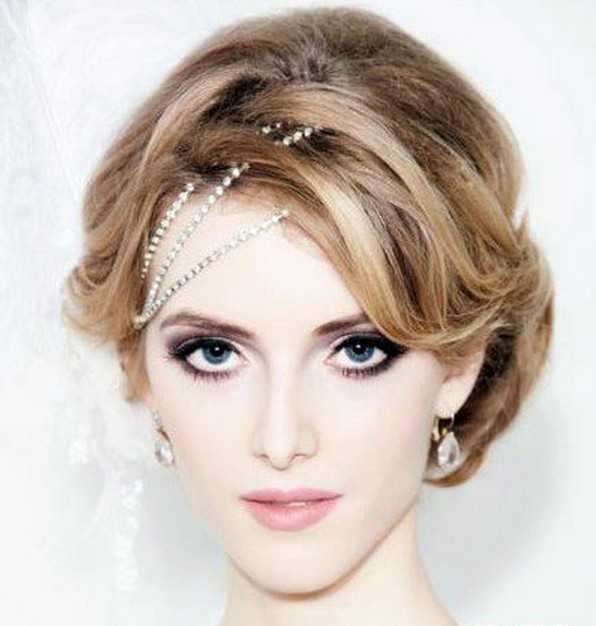 看似有些少许松散的欧美新娘盘发,将精美的珠链发饰与头发融合起来,再把刘海进行不规则设计,化上一个轻微烟熏妆,想要时尚而惊艳都通通不是问题哦!