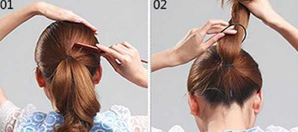 2、再把马尾的发尾部分放进拉发针的圈圈里去。