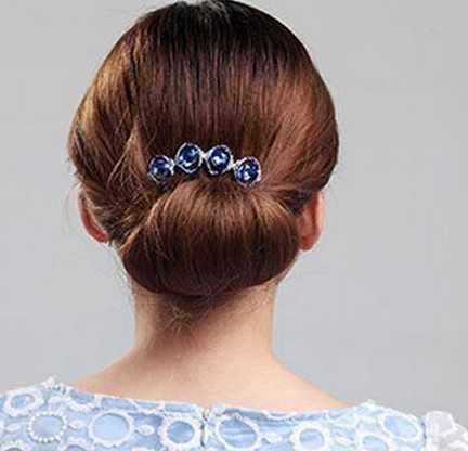 6、最后在中间点缀上精美的发饰,一款韩式的盘发就完美呈现了。