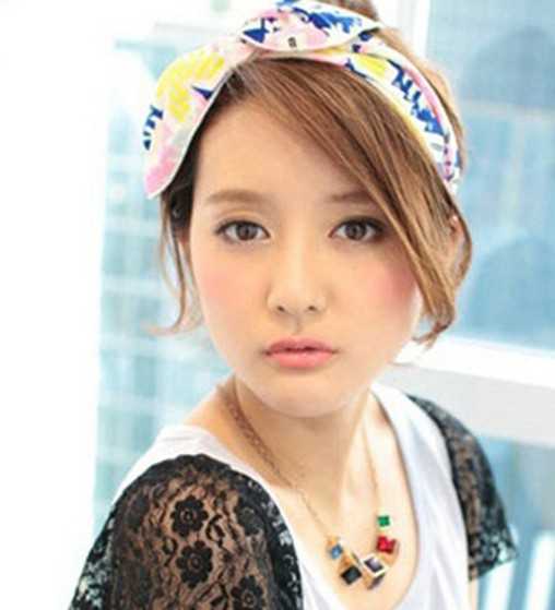 简单盘起的头发,在蝴蝶结头巾的搭配下,让这款韩系发型营造出很好的俏皮甜美感,侧分的刘海还能修颜小脸蛋效果哦!