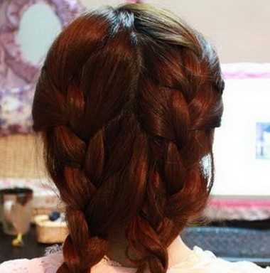 step4:抓住两个辫子的尾端,固定在后脑勺。