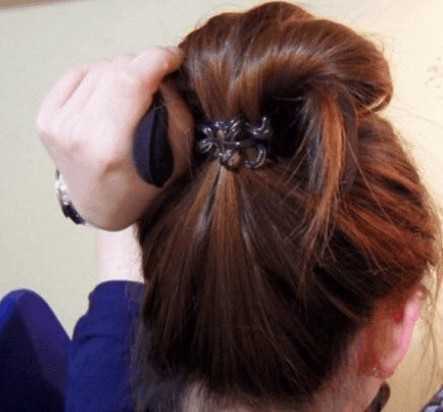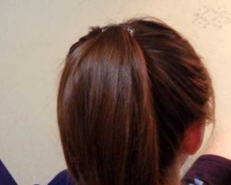 6、再简单把两侧的头发往后移,注意把海绵遮盖起来,再使用夹子固定就好了。